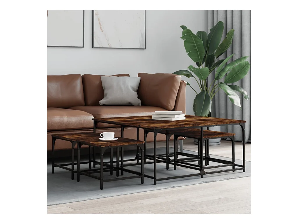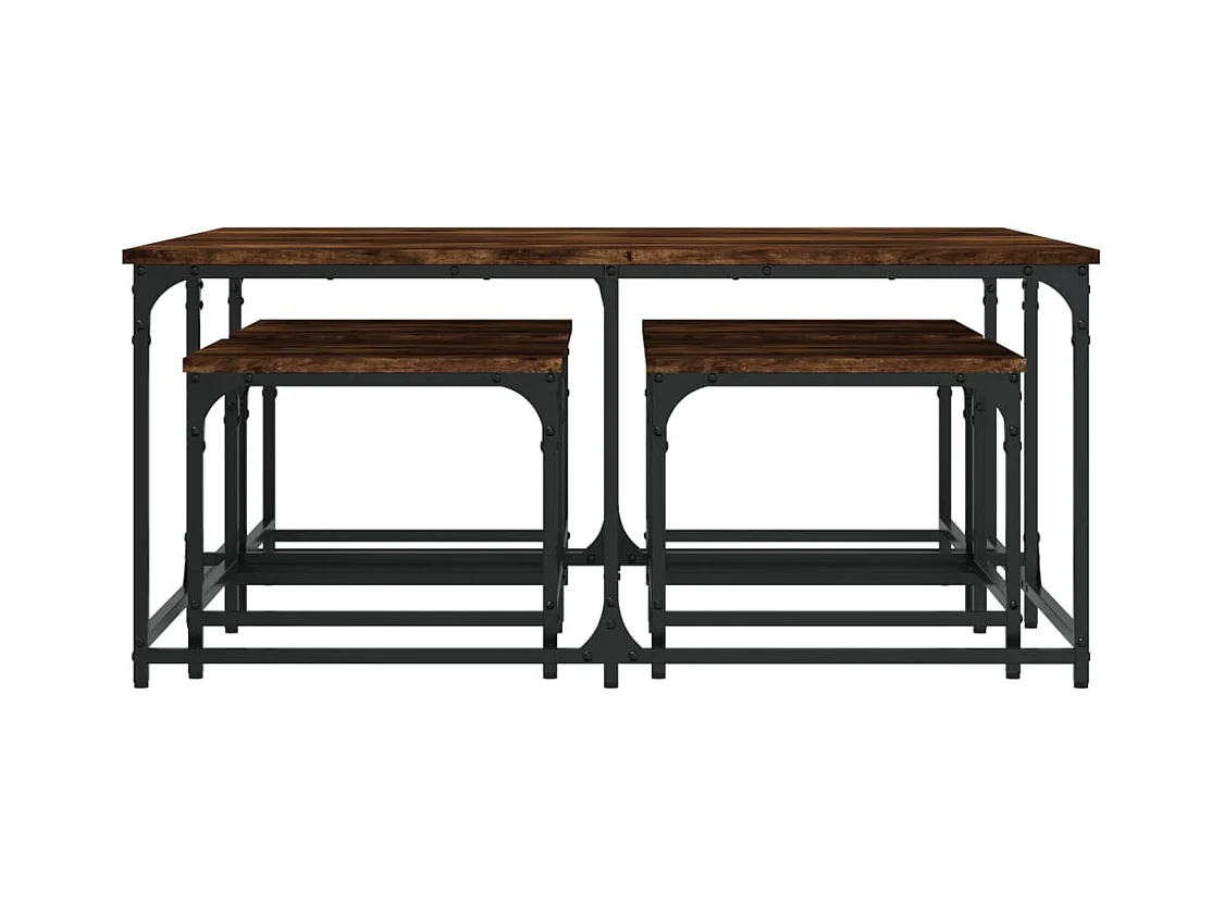 Mesas de centro nido de 3 piezas de madera de ingeniería de roble ahumado