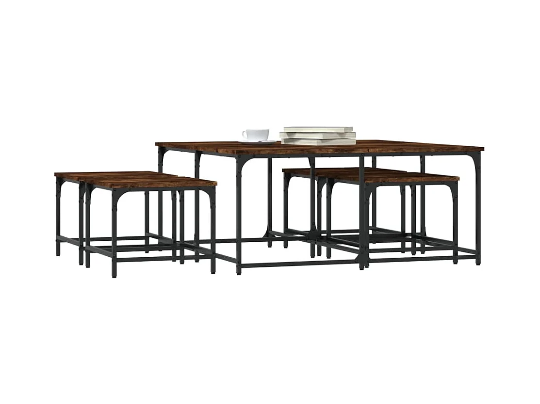 Mesas de centro nido de 5 piezas de madera de ingeniería de roble ahumado