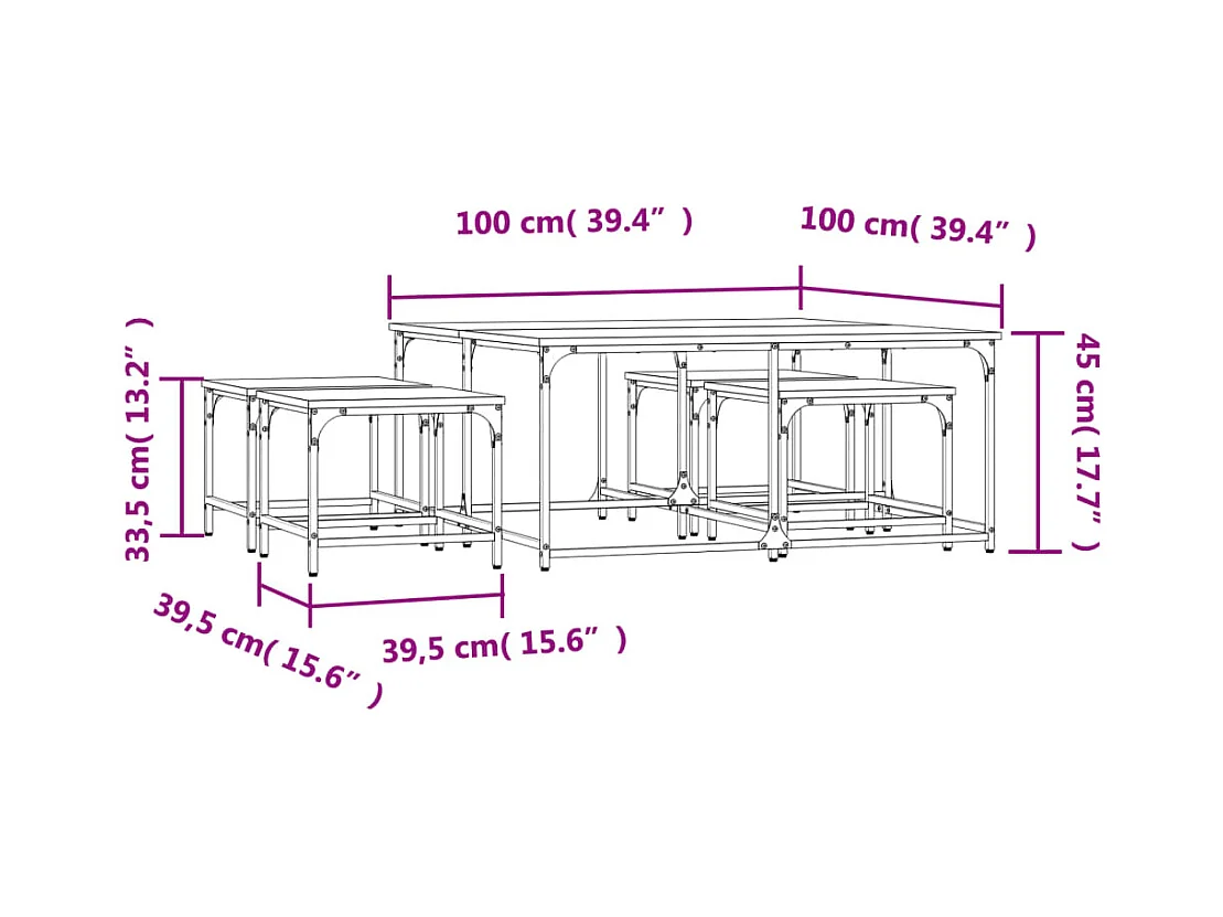 Mesas de centro nido de 5 piezas de madera de ingeniería de roble Sonoma