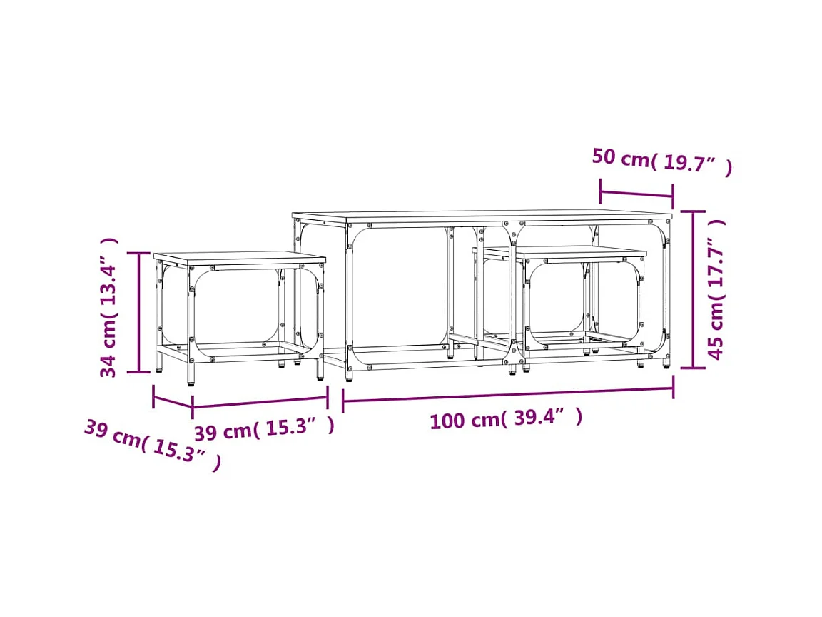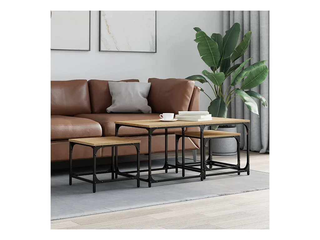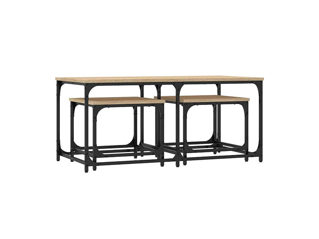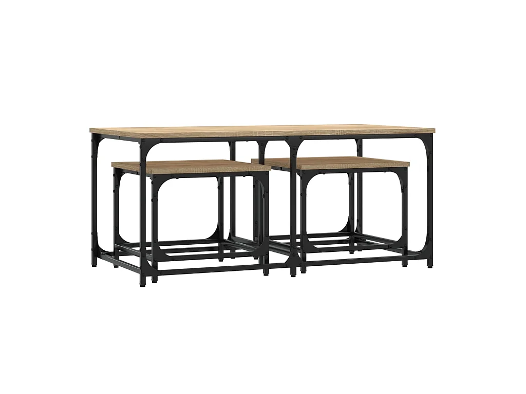 Mesas de centro nido doradas, 3 piezas, madera de ingeniería de roble Sonoma