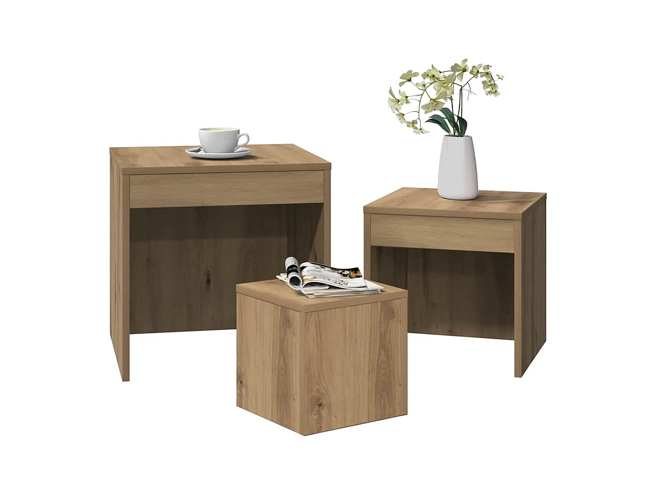 Mesas nido de 3 piezas de aglomerado de roble Sonoma
