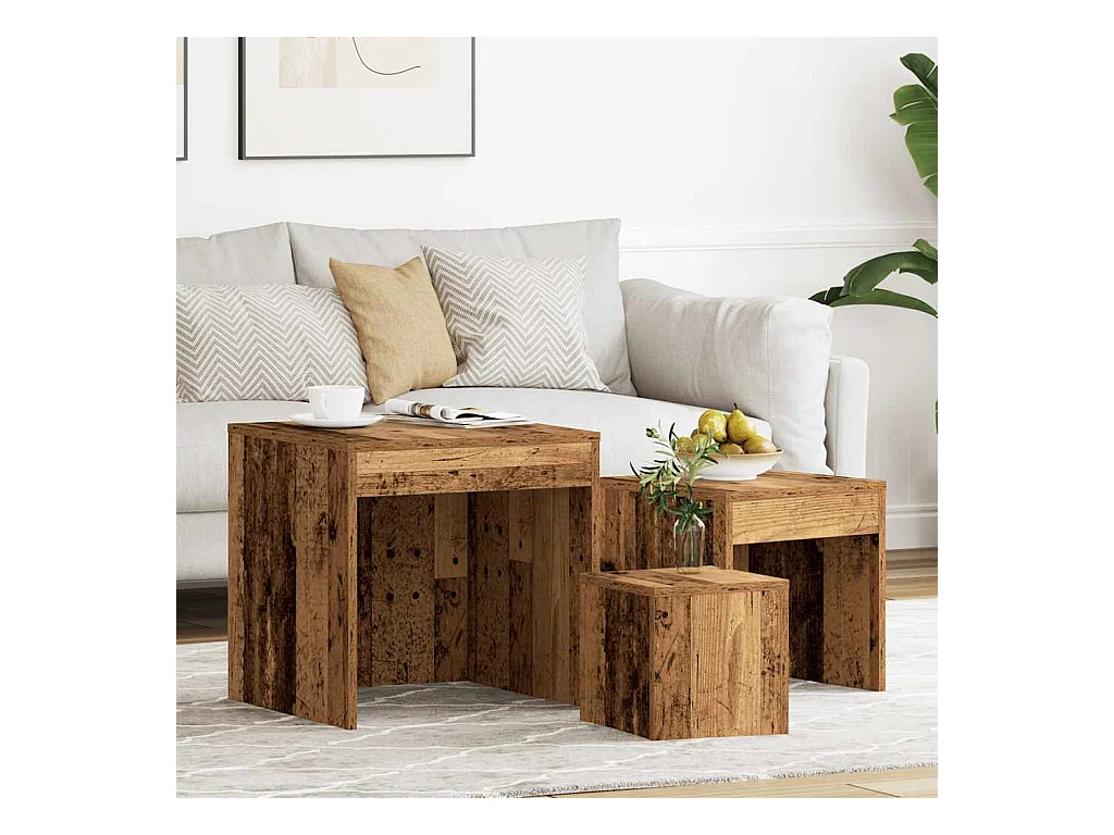 Mesas nido 3 piezas madera vieja madera de ingeniería