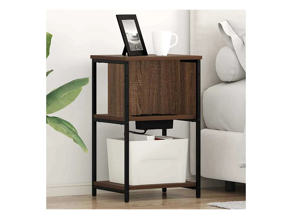 Mesita de noche con estación de carga 2 piezas Roble Marrón