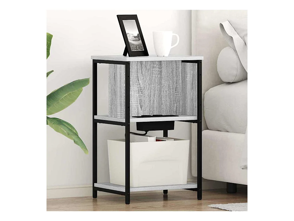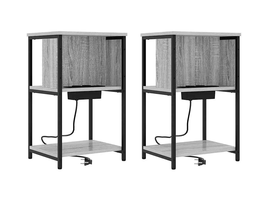 Mesita de noche de dos piezas en gris Sonoma con estación de carga
