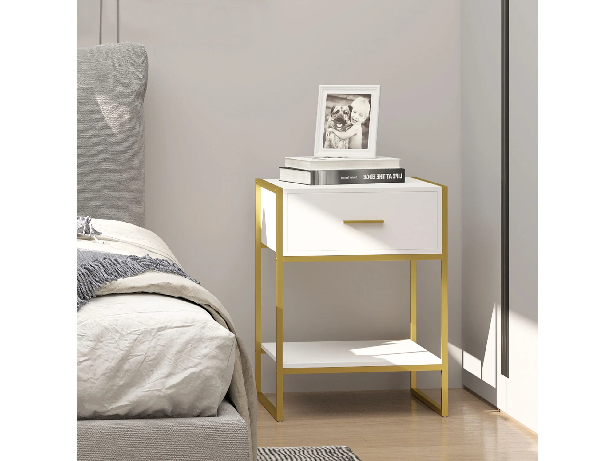 Artan Mesita de noche con patas de metal blanco 40x35x69 cm