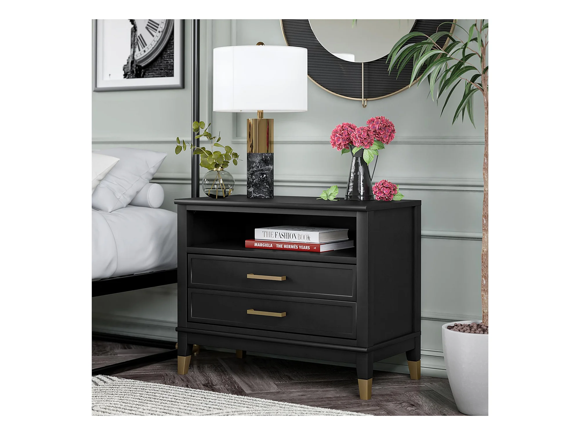 Westerleigh | Mesilla de noche con 2 cajones y 1 estante en negro