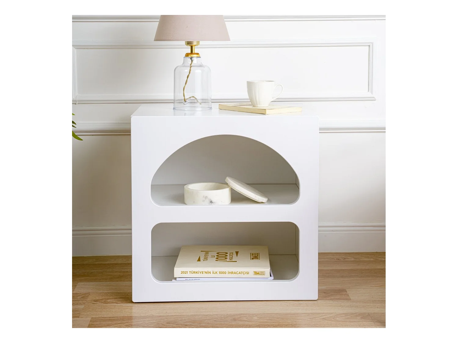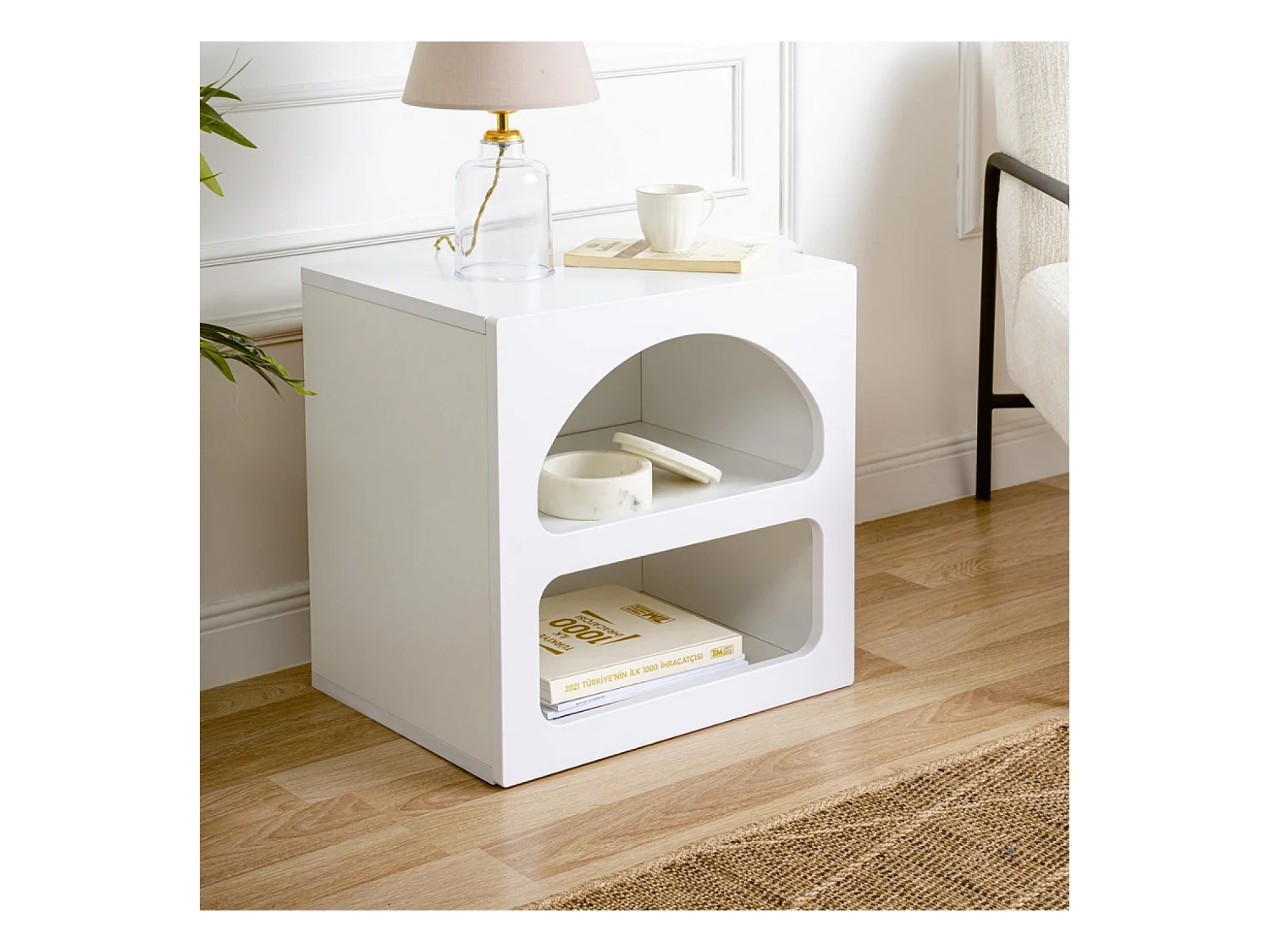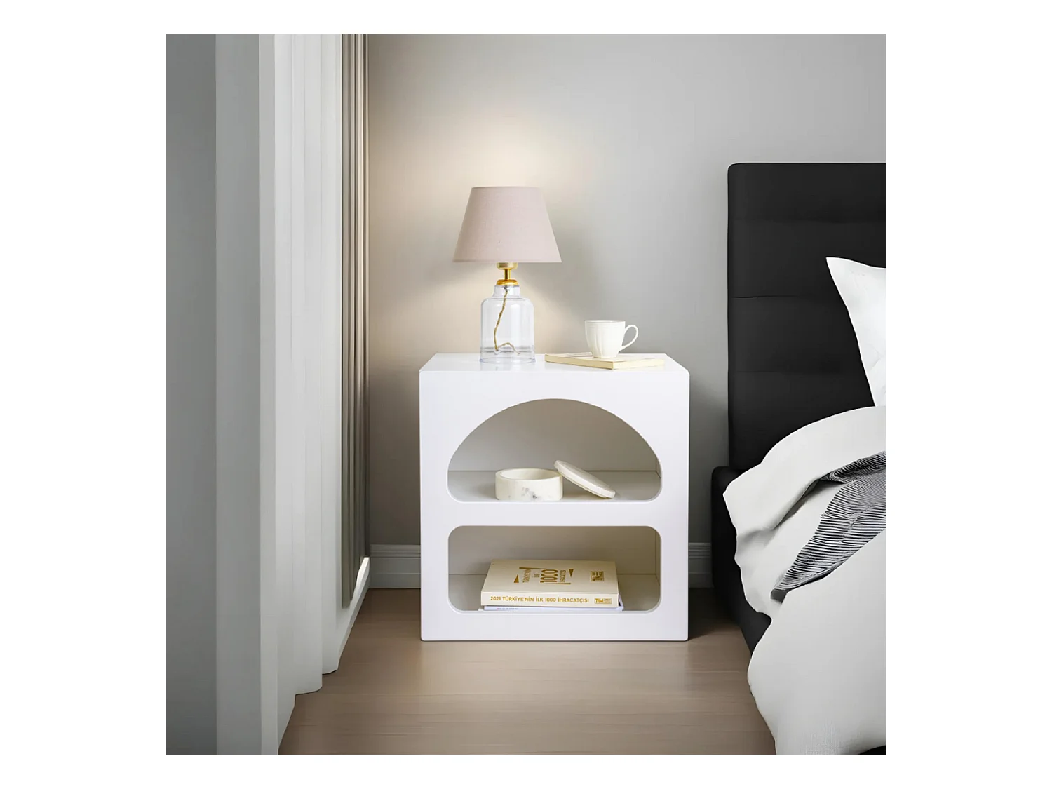 Mesita de noche de madera y blanca 2 cajones MOLDE