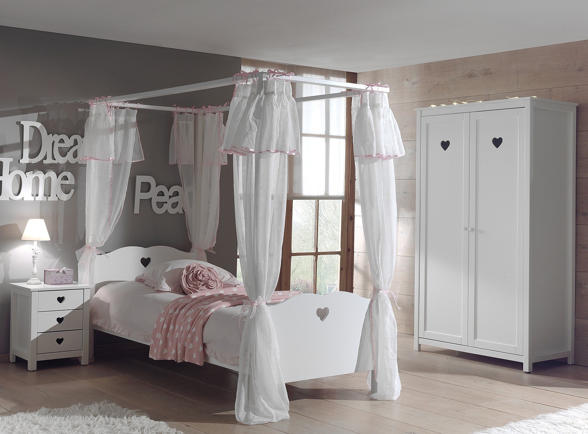Mesilla de noche Cœur 3 cajones de madera lacada blanca