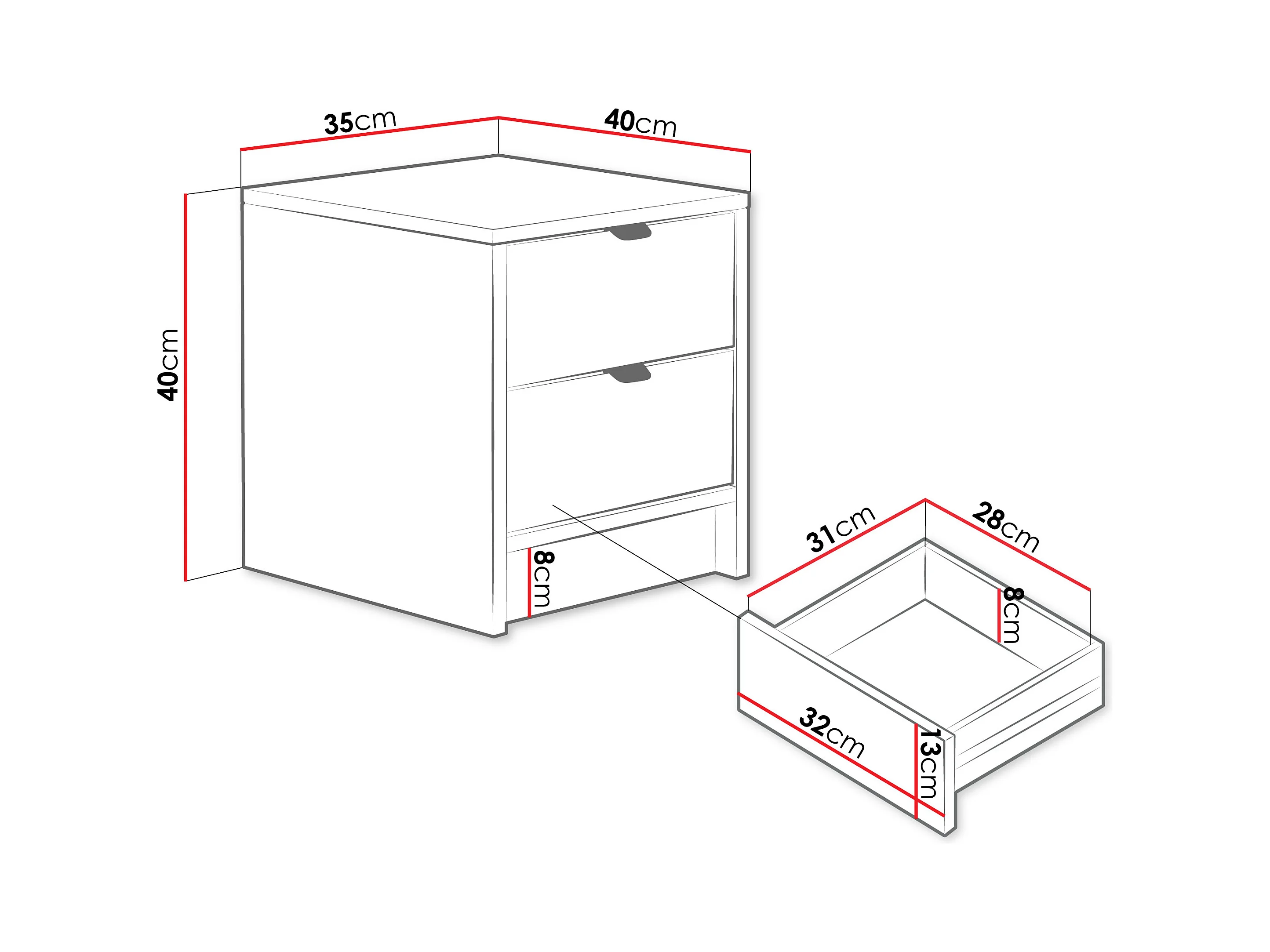 Mesilla de noche Comfivo Larmire 106, Negro, 40x35x40cm, MDF|Aglomerado laminado