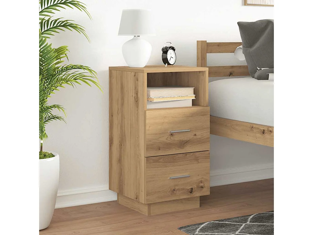 Mesilla de noche con 2 cajones roble sonoma 36x36x68 cm