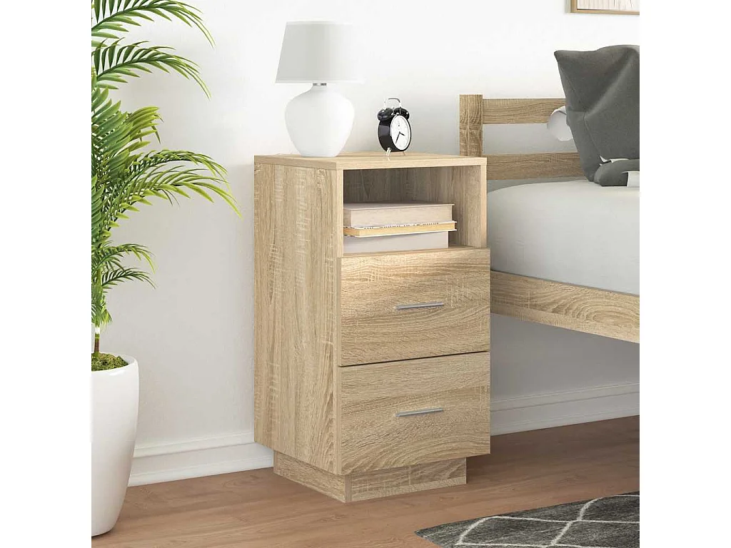 Mesilla de noche con 2 cajones roble sonoma 36x36x68 cm