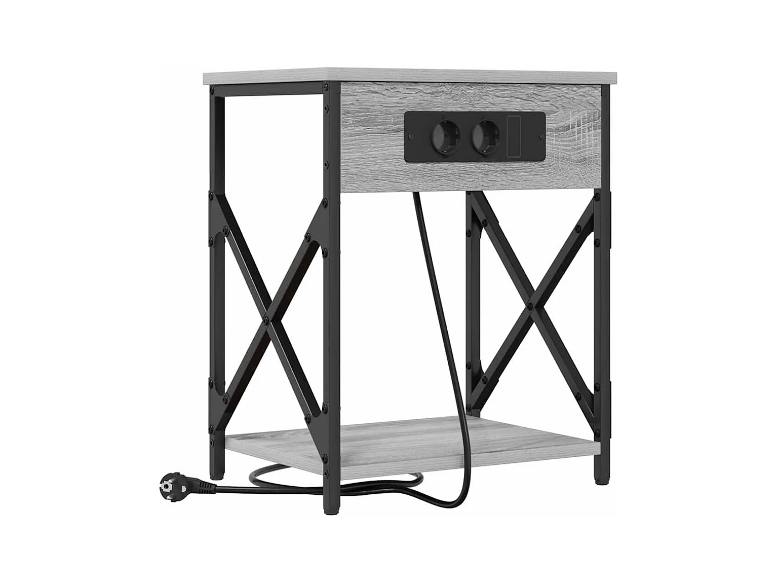 Mesita de noche de dos piezas en gris Sonoma con estación de carga