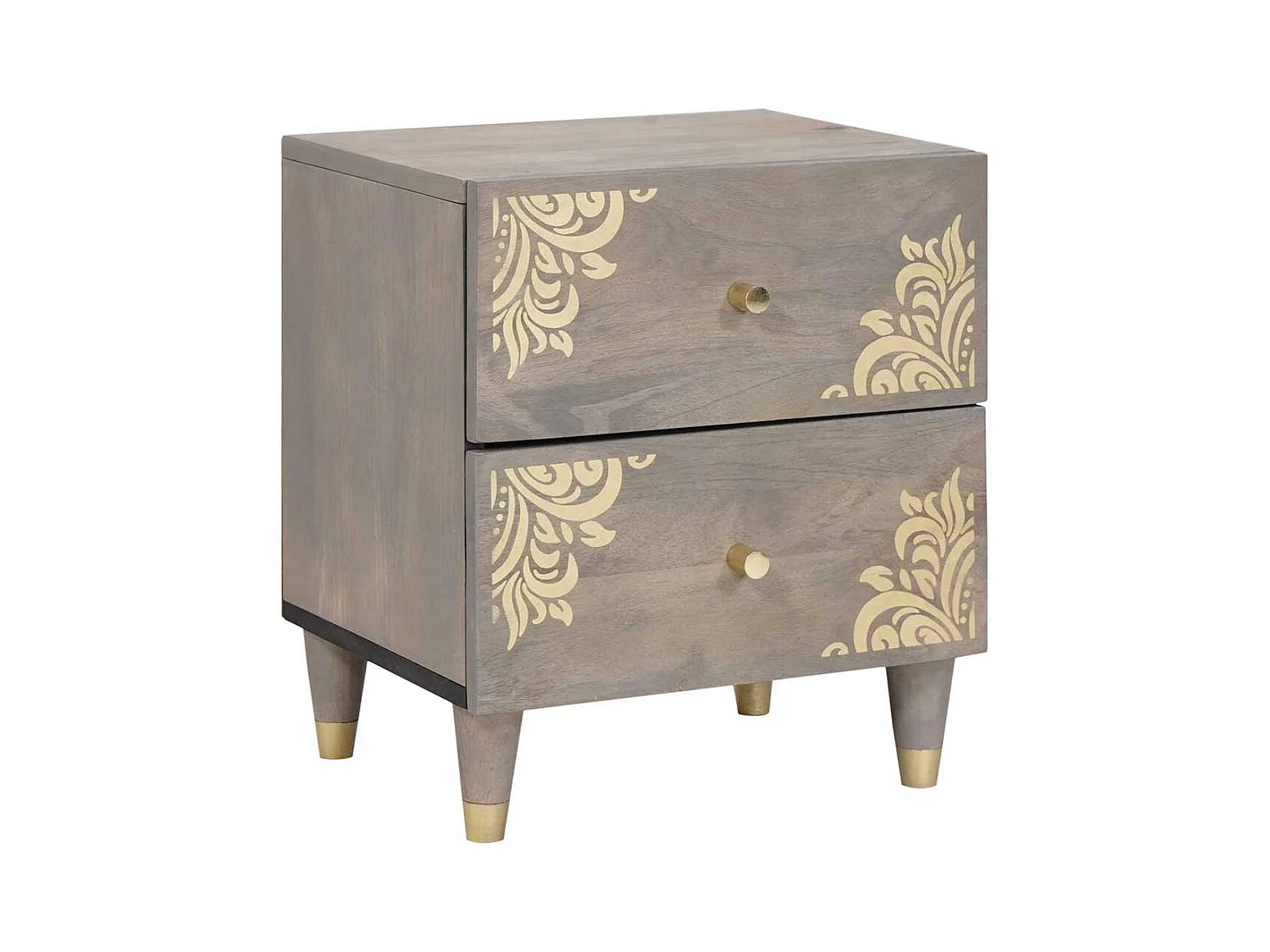 Mesilla de noche Gris 50 x 33 x 60 cm madera maciza de mango