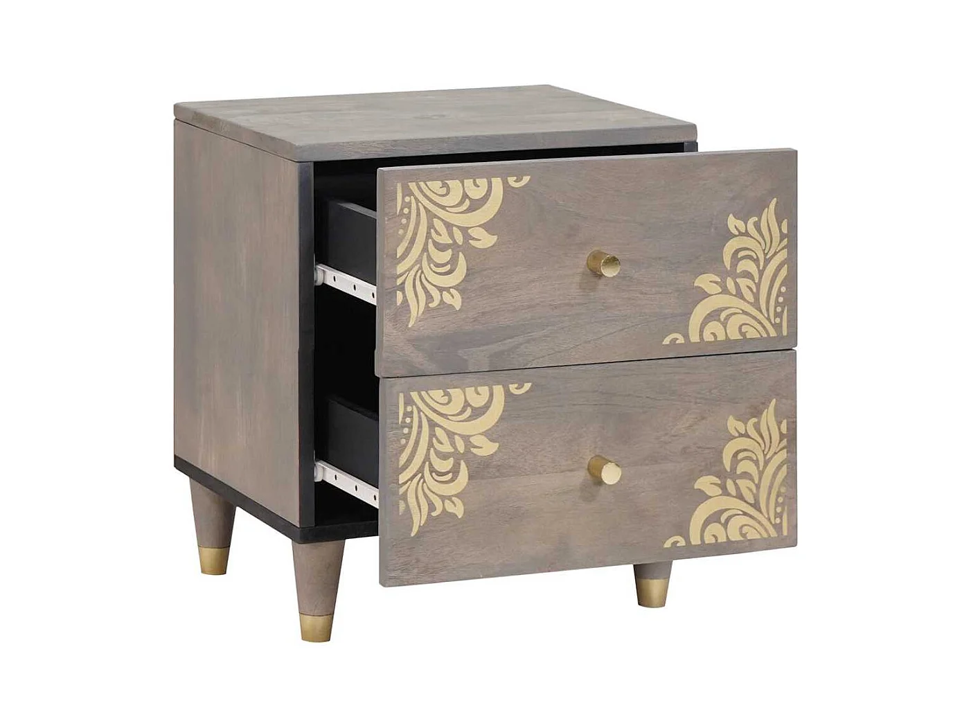 Mesilla de noche Gris 50 x 33 x 62 cm madera maciza de mango