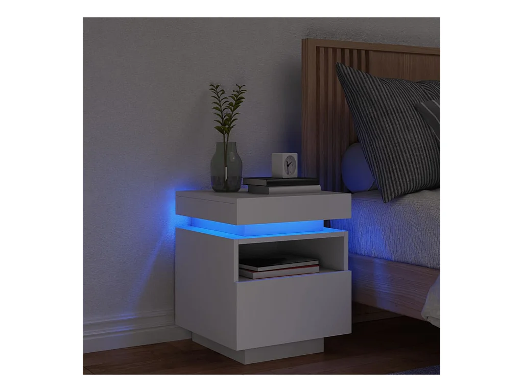 Mesilla de noche con luces LED blanca 40x39x48,5 cm