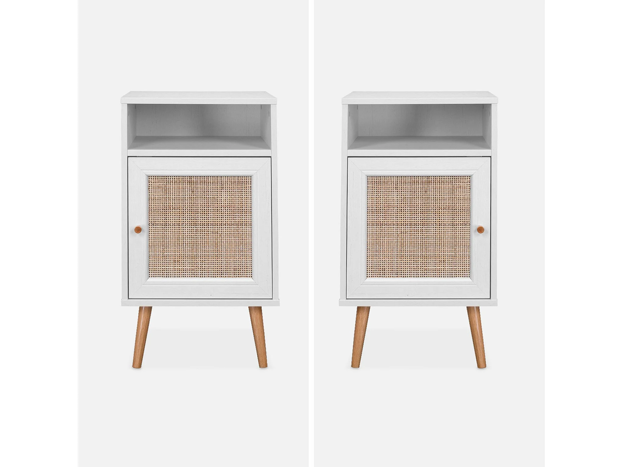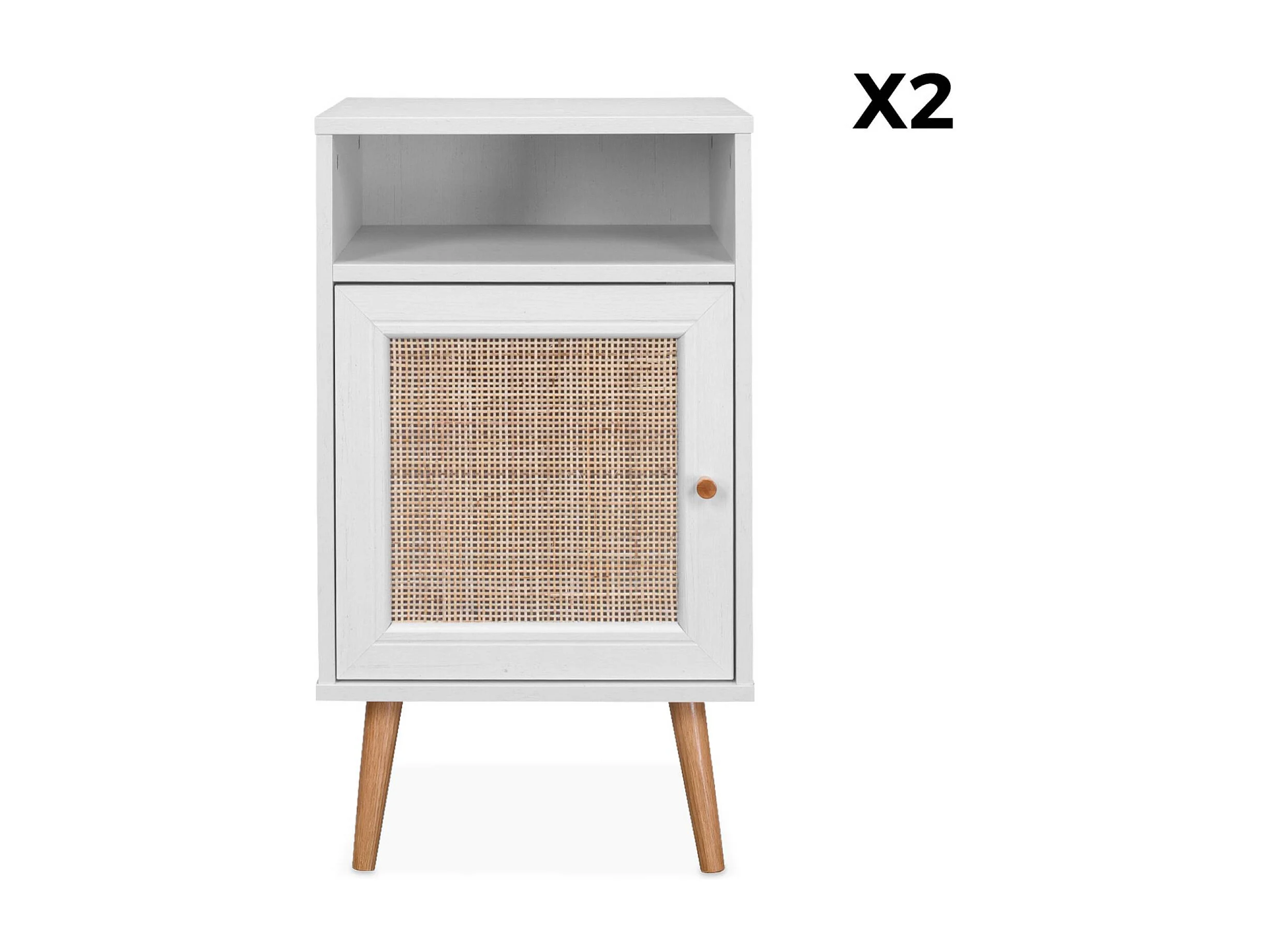 Mesita de noche escandinava con efecto madera y caña, set de 2 blanco