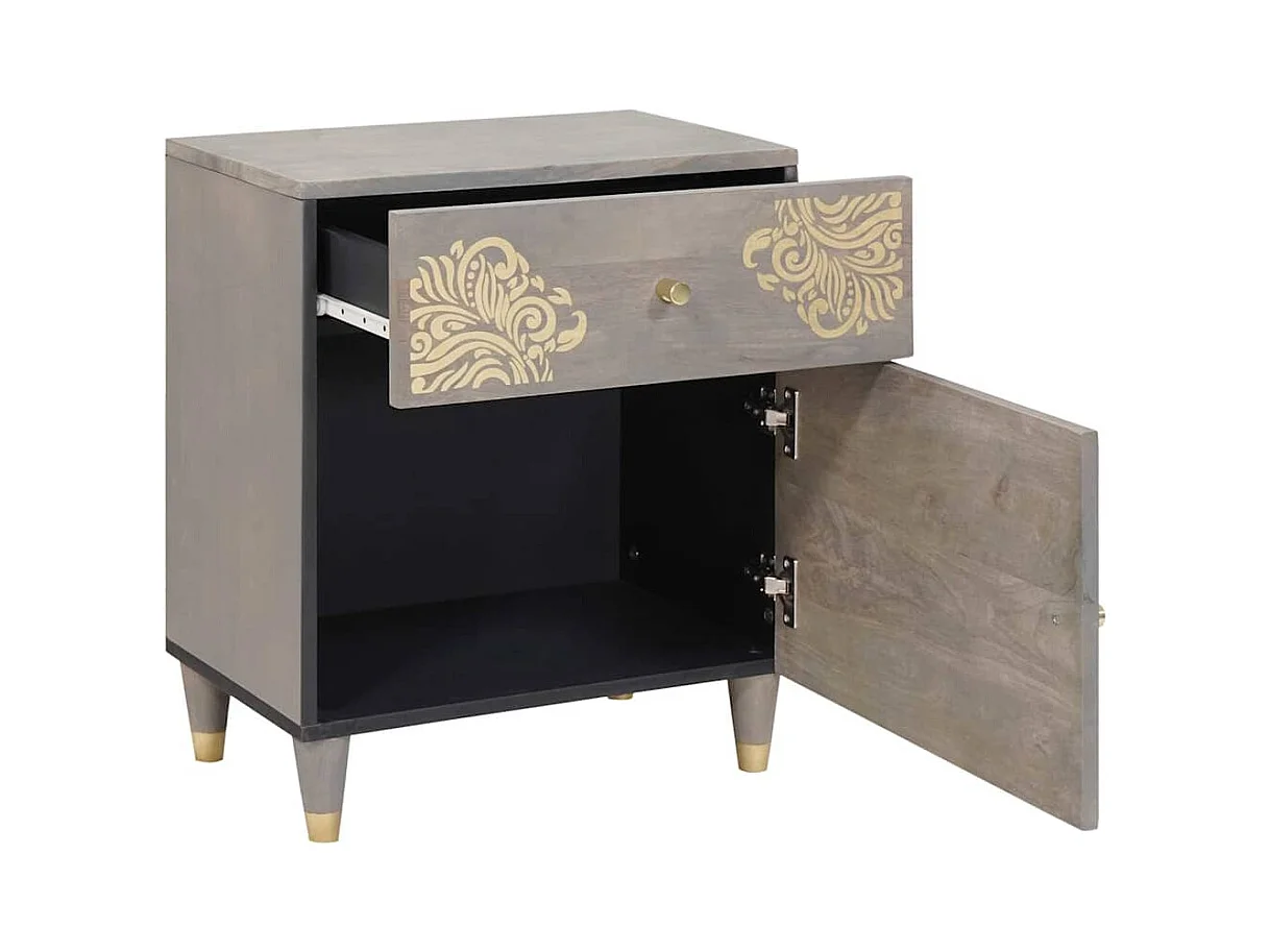 Mesilla de noche Gris 50 x 33 x 62 cm madera maciza de mango