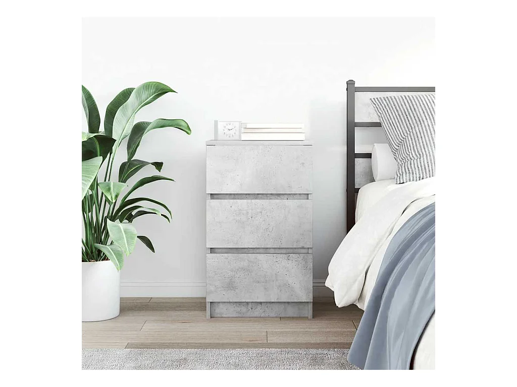 Mesilla de noche | Mesita de noche con 3 cajones gris hormigón 39x35x65 cm