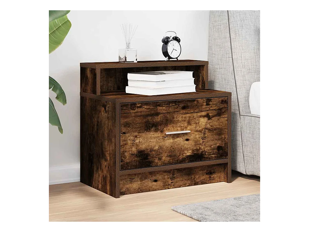 Mesilla de noche | Mesita de noche con cajón roble ahumado 51x31x47 cm