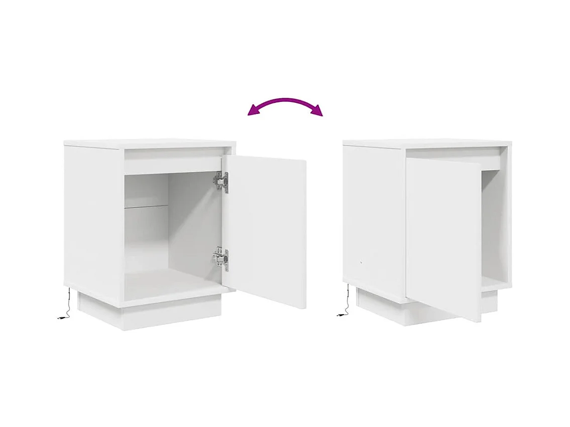 Mesita de noche | Mesilla de noche con luces LED madera de ingeniería blanca