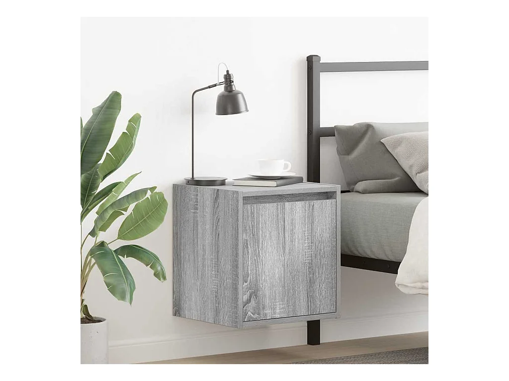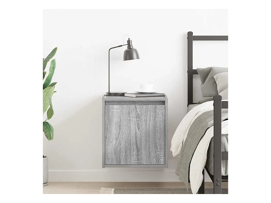 Mesita de noche | Mesilla de noche de pared color gris Sonoma 45x30x35 cm