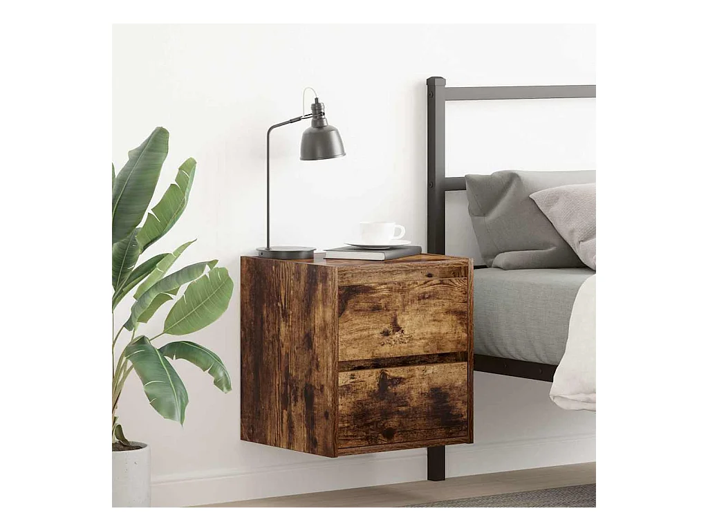 Mesita de noche | Mesilla de noche de pared color roble ahumado 45x30x35 cm