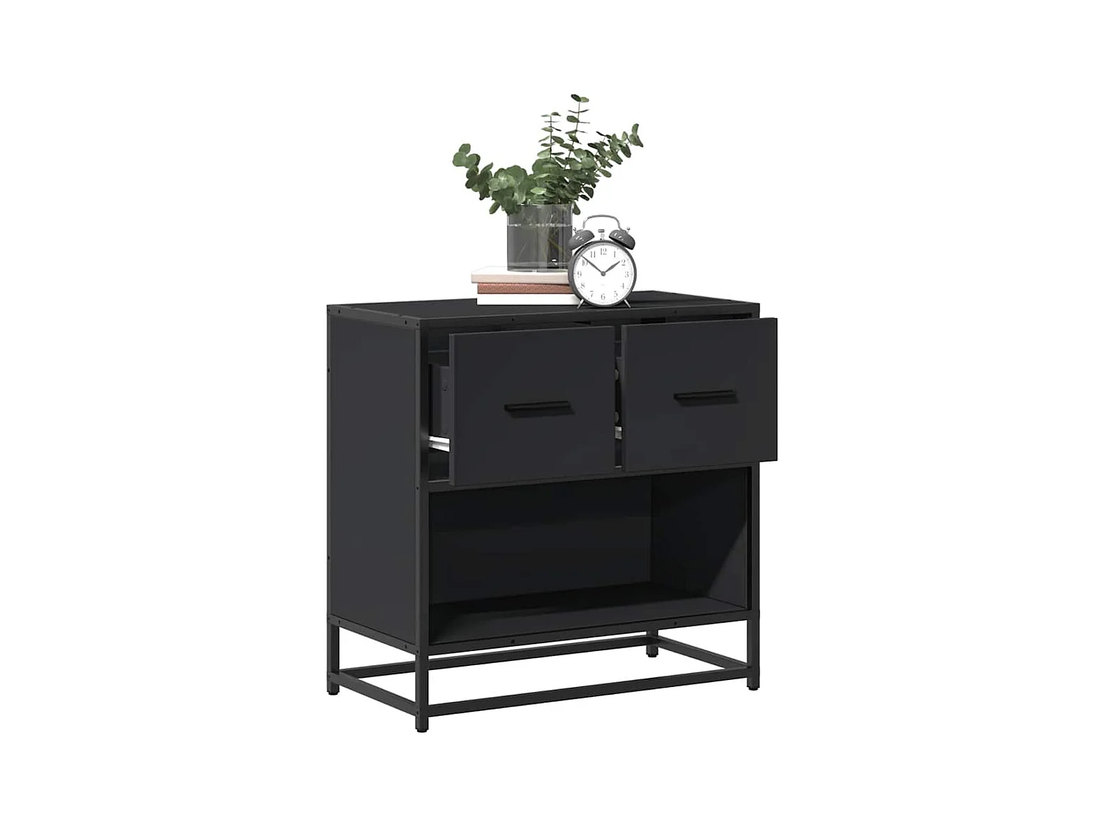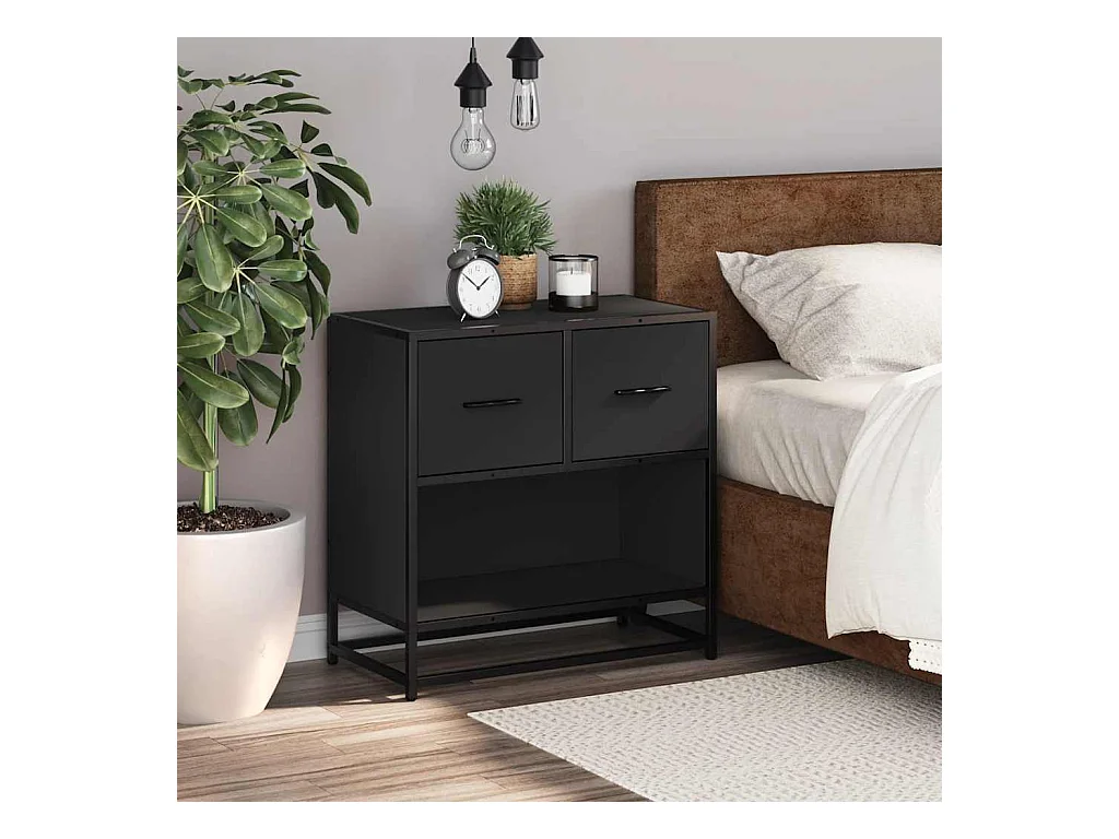 Mesilla de noche | Mesita de noche negra 60x31x60 cm madera procesada y metal