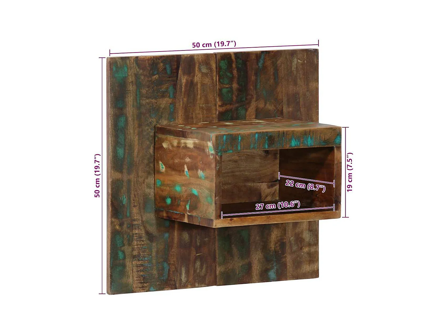 Mesilla de noche multicolor 50x27x50 cm madera recuperada
