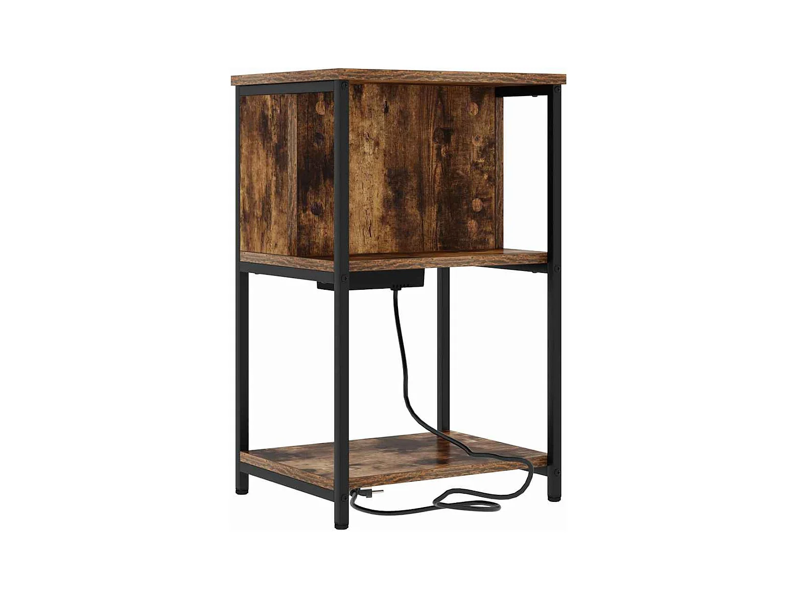Mesita de noche con estación de carga 2 piezas Roble Marrón