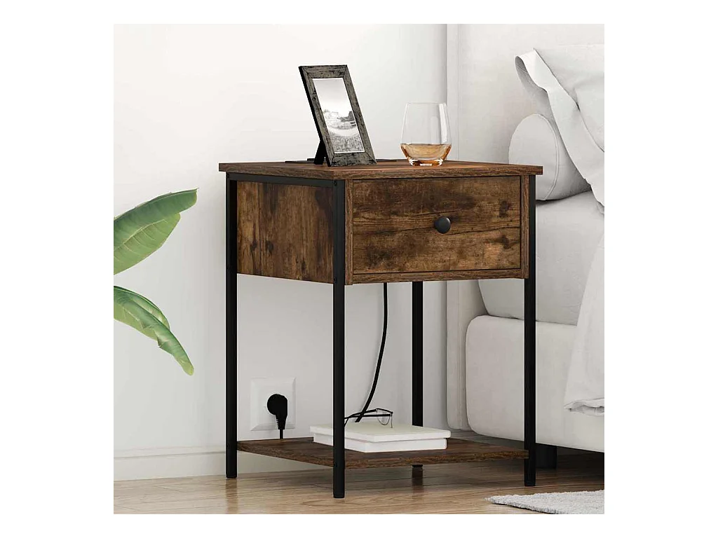 Mesilla de noche con estación de carga con cajón Roble ahumado