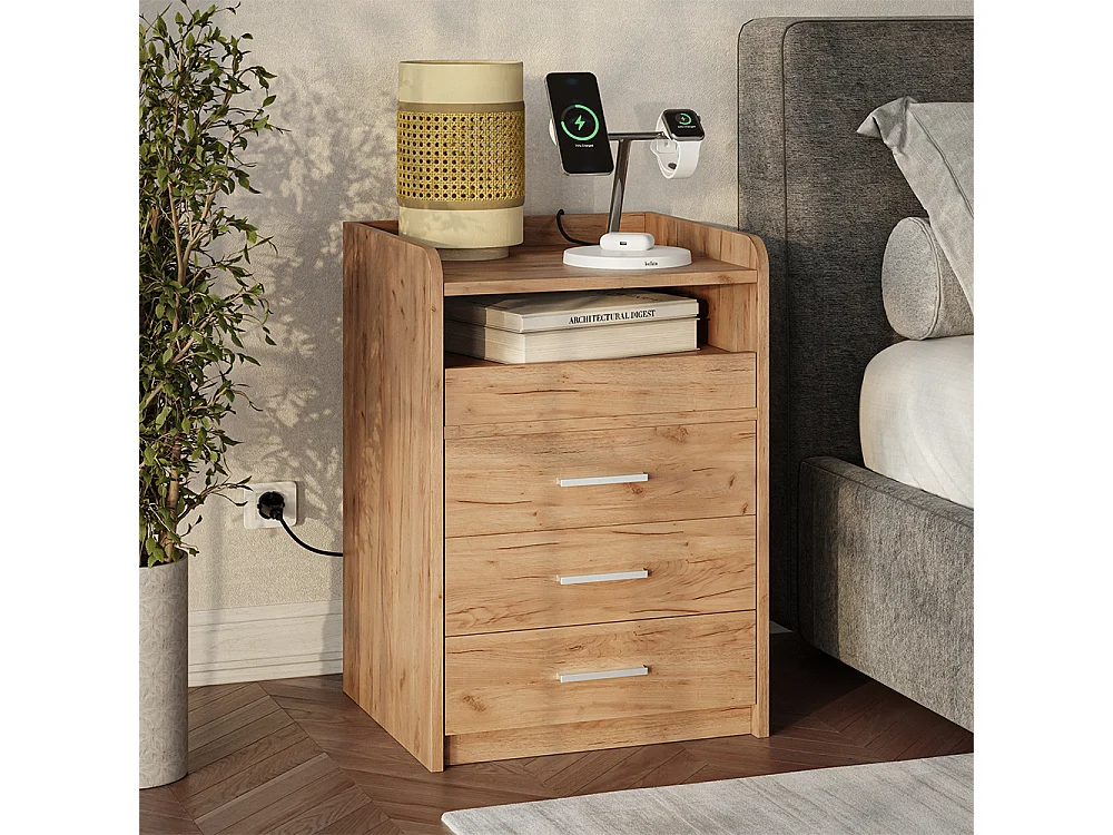 Mesita de Noche 1 Cajón Rebecca Mobili Marzeh 46,5x40x35,5 Tablero de partículas Roble Claro Moderno