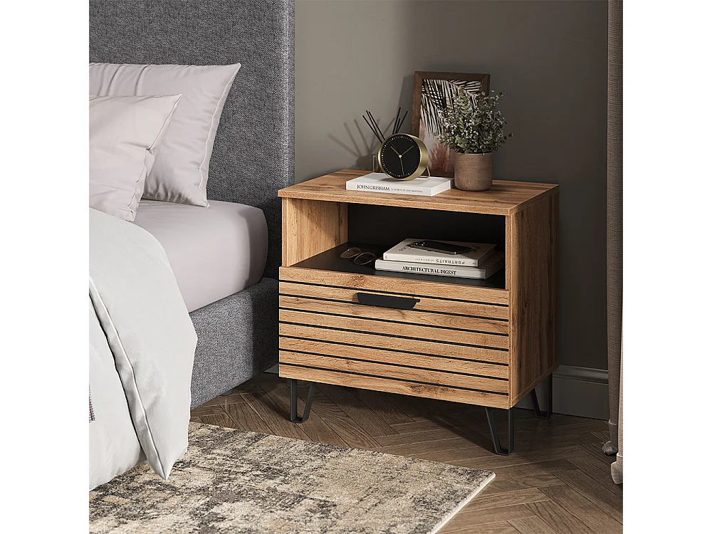 Mesita de Noche 1 Cajón Rebecca Mobili Marzeh 46,5x40x35,5 Tablero de partículas Roble Claro Moderno