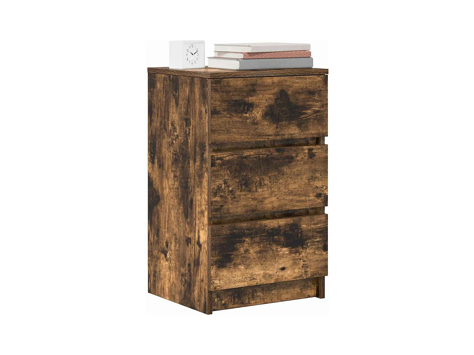 Mesilla de noche con 3 cajones roble ahumado 39x35x65 cm
