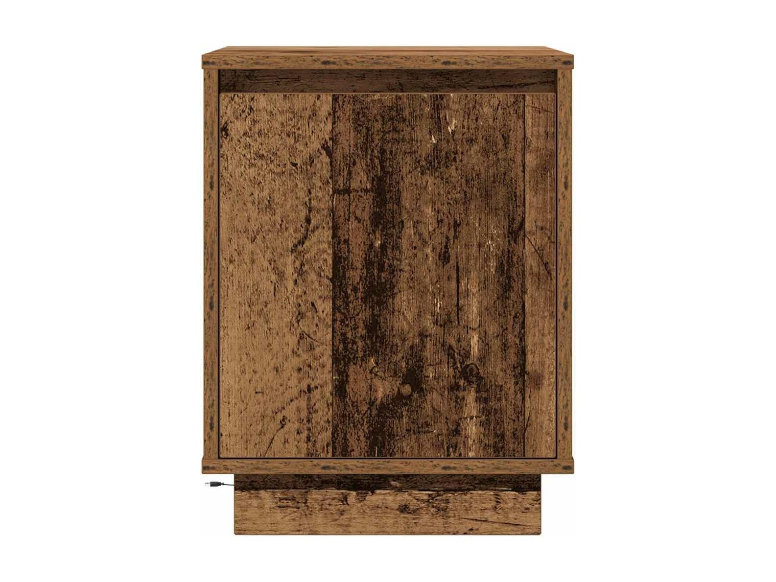 Mesilla de noche con luces LED madera vieja 38x34x50 cm