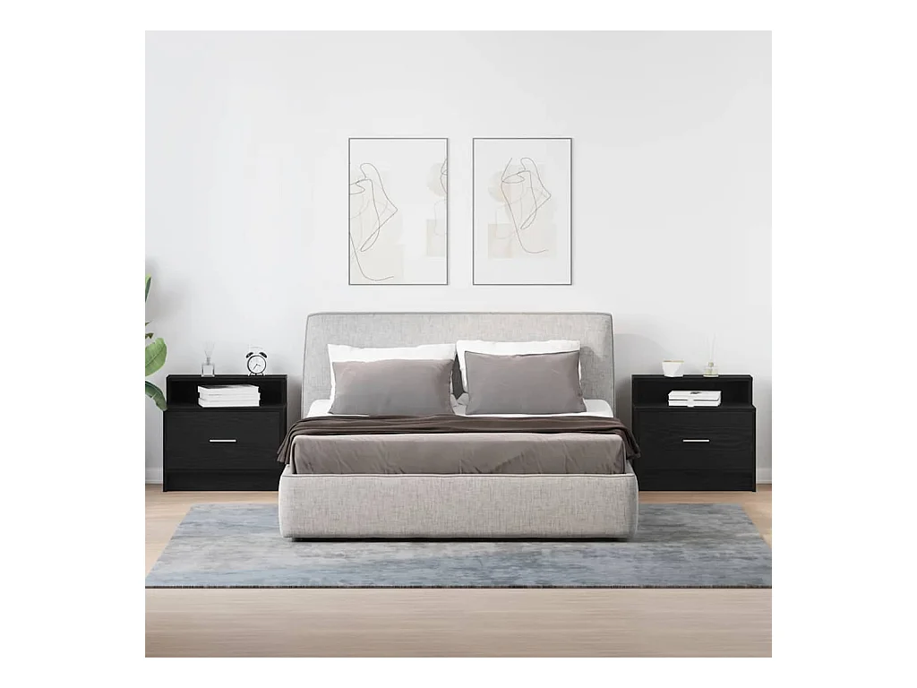 Mesitas de noche | Mesilla de noche 2 uds madera ingeniería negro 40x31x50 cm