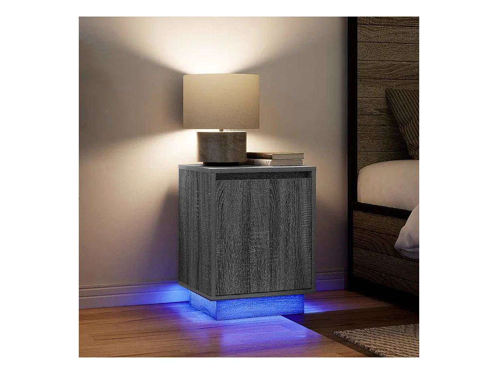 Mesillas de noche | Mesita de noche con luces LED 2 uds gris sonoma 38x34x50 cm