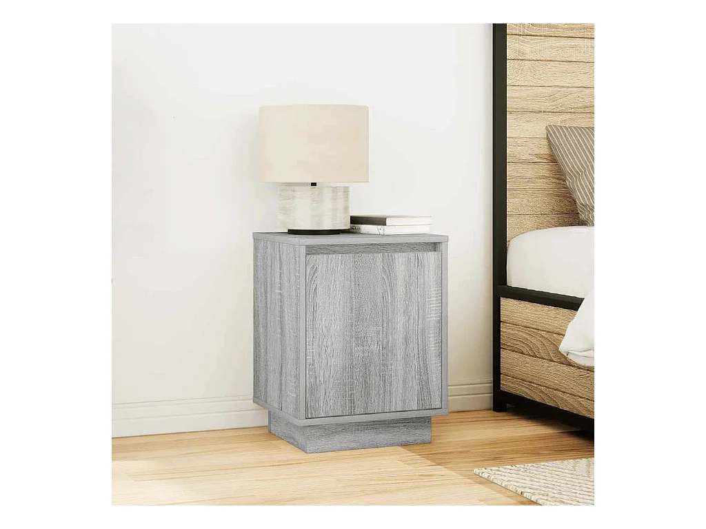 Mesitas de noche | Mesilla de noche con luces LED 2 uds gris Sonoma 35x39x55 cm