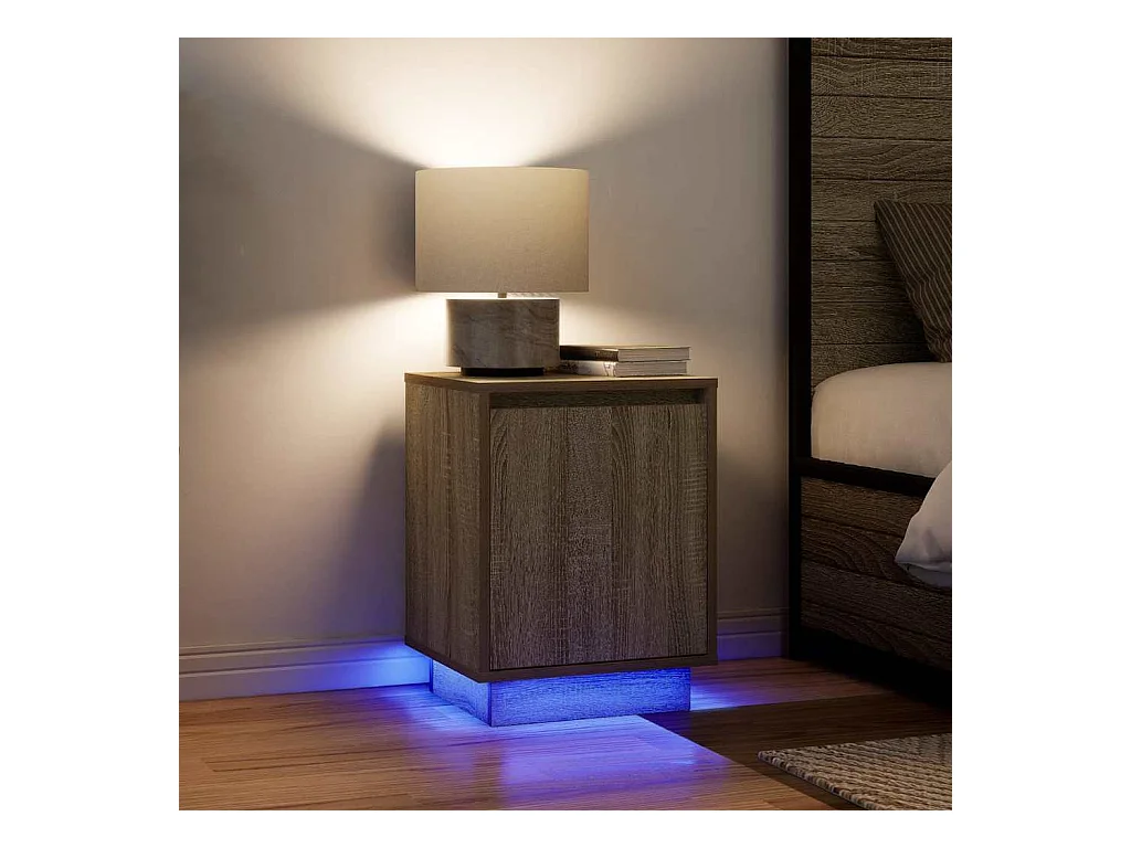 Pack 2 uds Mesitas de noche | Mesilla de noche con luces LED roble Sonoma 40x39x48,5 cm