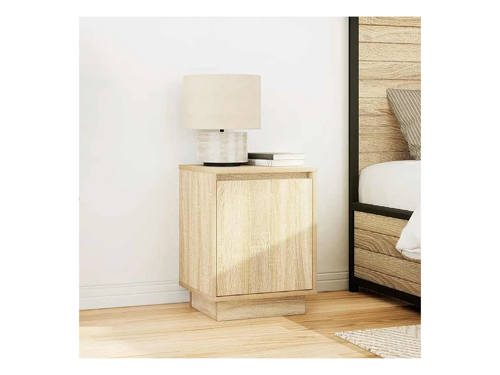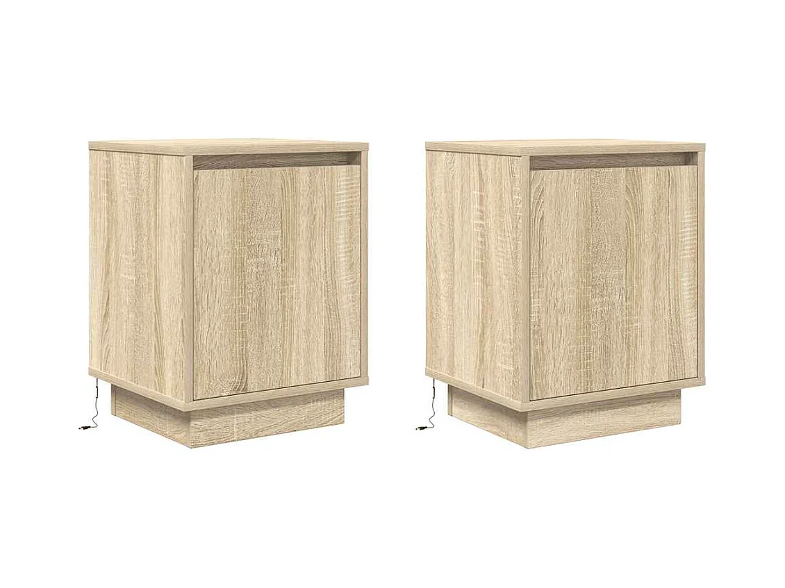 Pack 2 uds Mesitas de noche | Mesilla de noche con luces LED roble Sonoma 35x39x55 cm