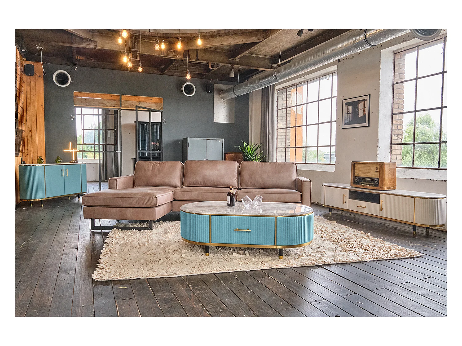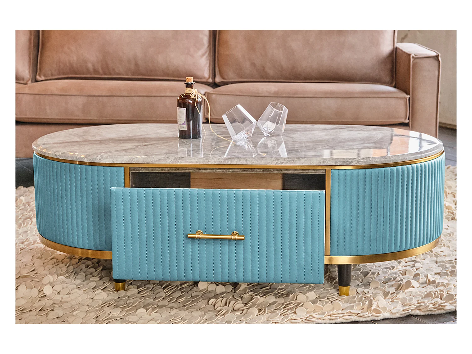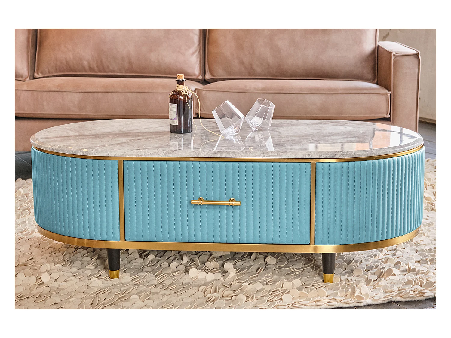 Mesita - azul claro cuero sintético - 70 x 130 cm - MARIA