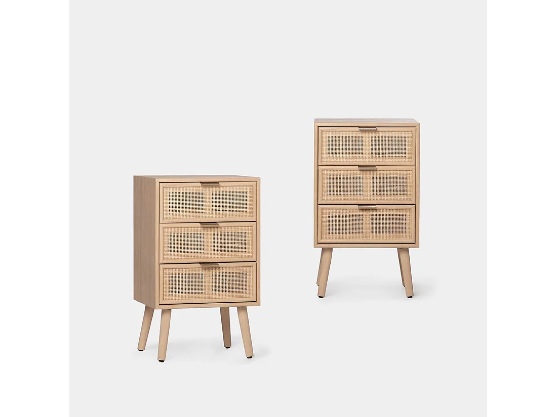 Mesita de noche 3 cajones de Fibra natural Natural 71 x 42- Alis