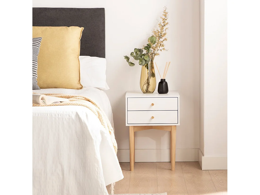 Mesita de noche 2 cajones de Lacado Blanco-Natural 59 x 40- Kemi