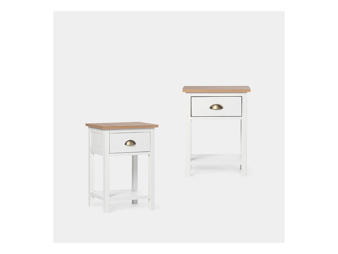 Mesita de noche 2 cajones de Lacado Blanco-Natural 59 x 40- Kemi