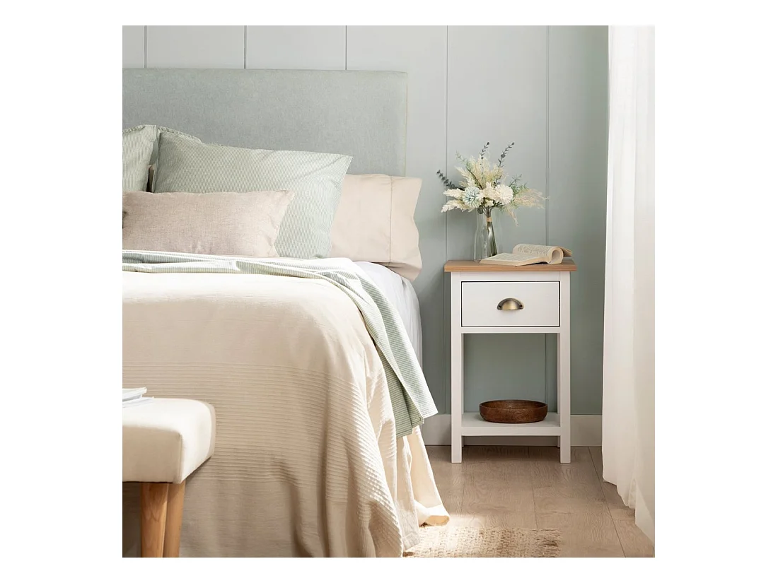 Mesita de noche 1 cajón de Lacado Blanco-Natural 60 x 40- Marais