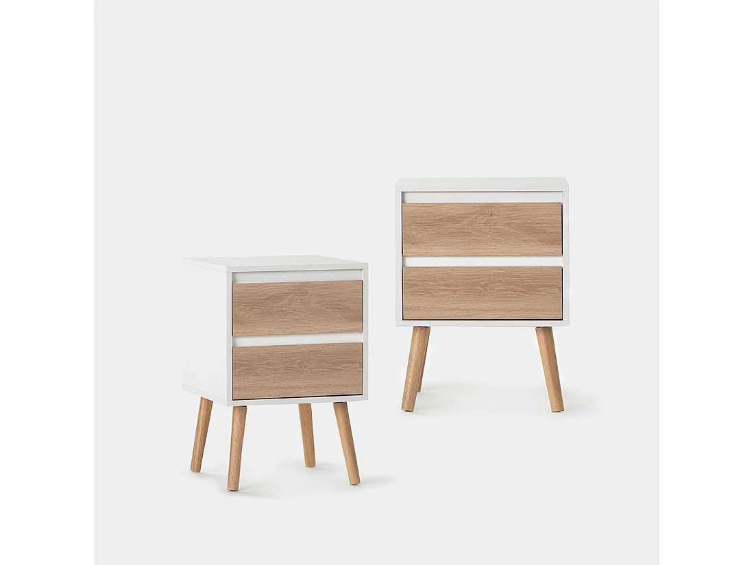 Mesita de noche 2 cajones de Lacado Blanco-Natural 59 x 40- Kemi