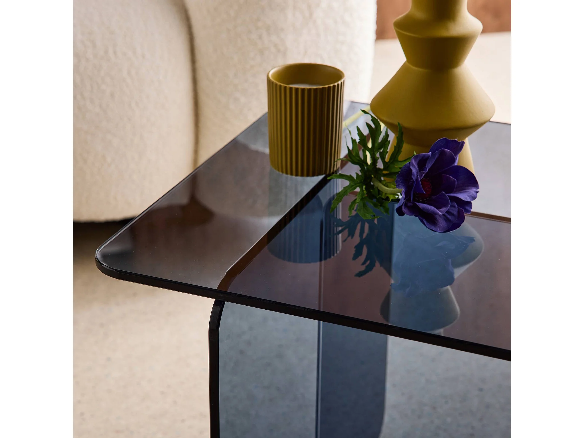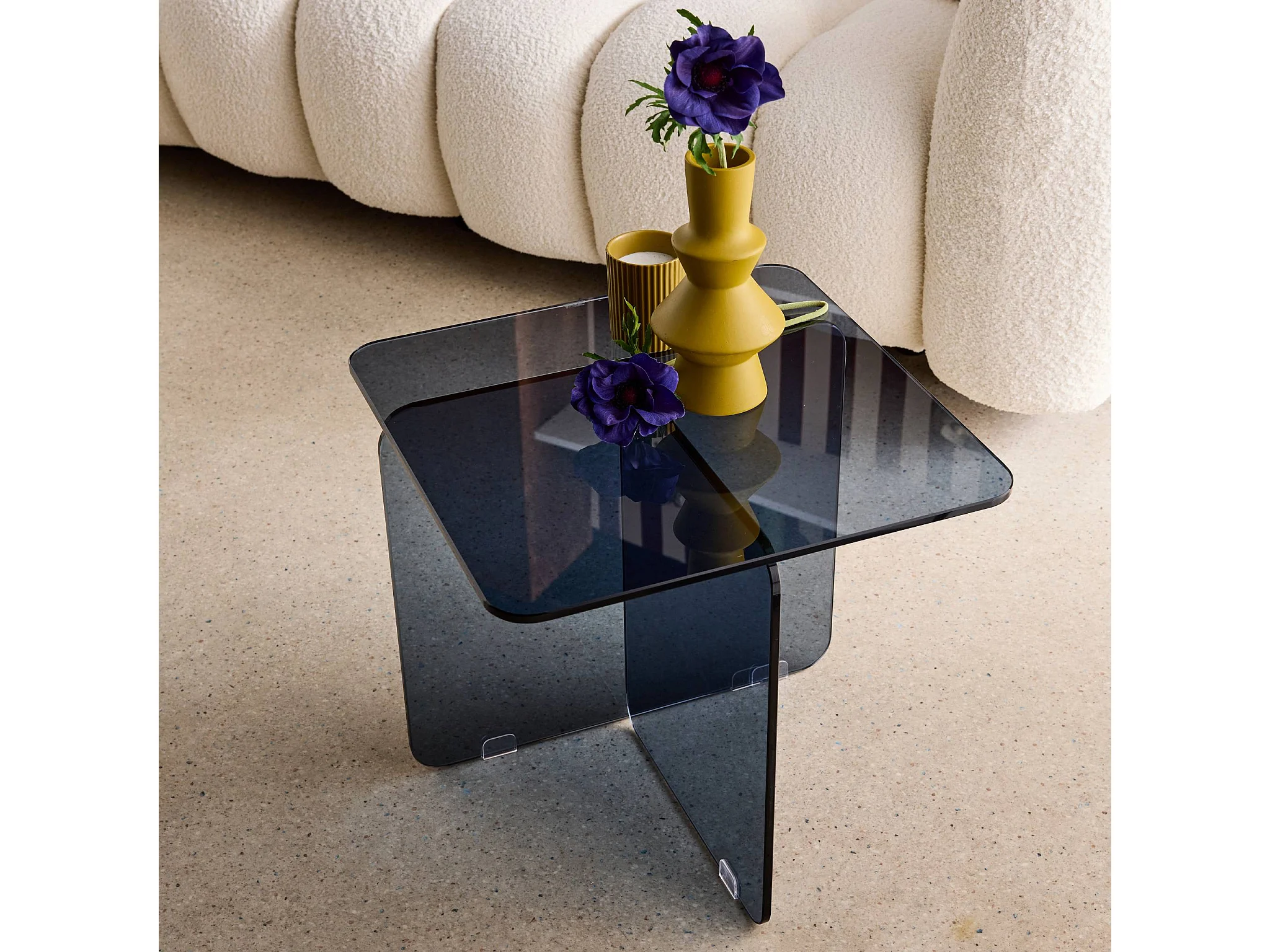 Mesita cuadrada de cristal templado azul gris