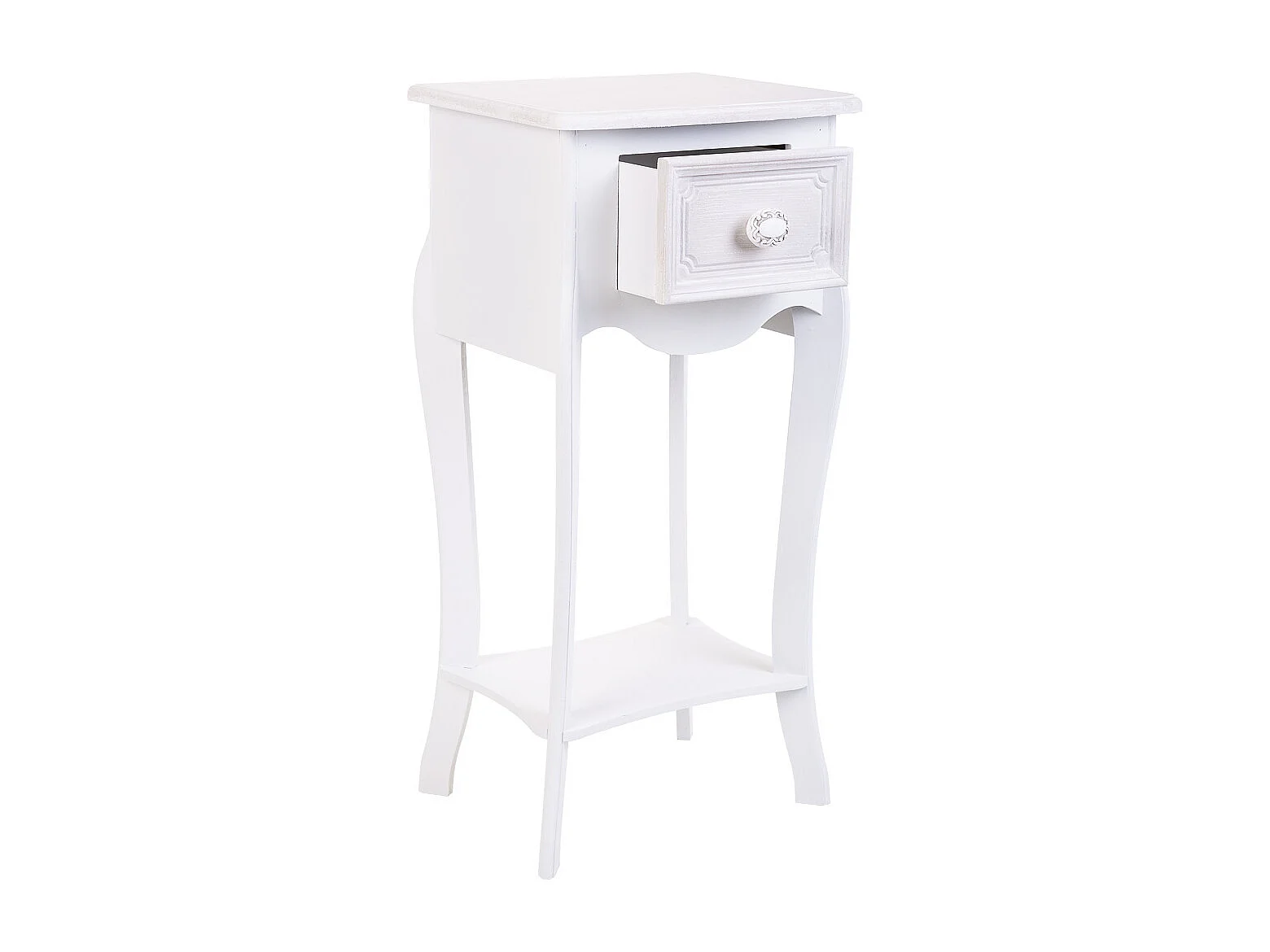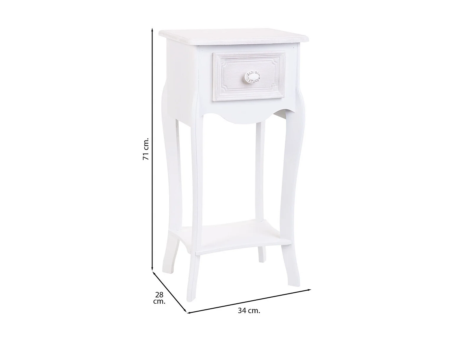 Mesita de madera de 1 cajon y 1 balda blanco 34x28x71