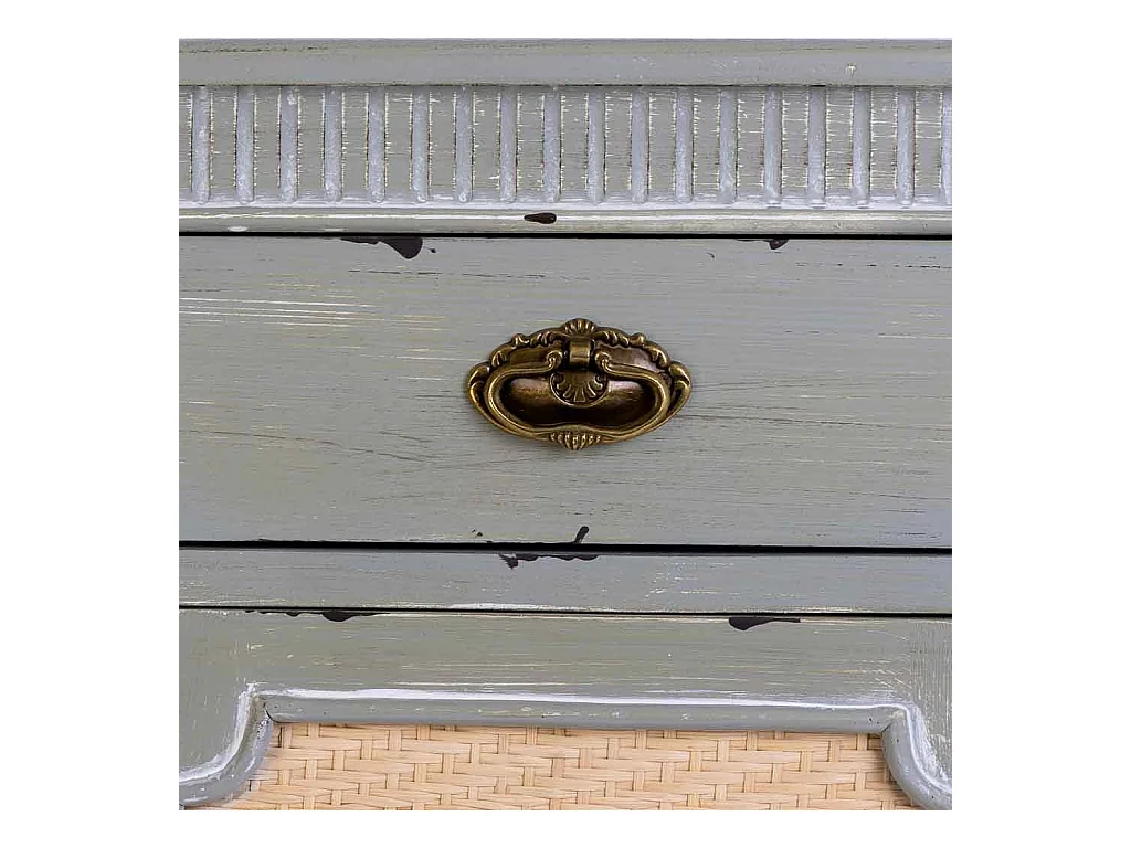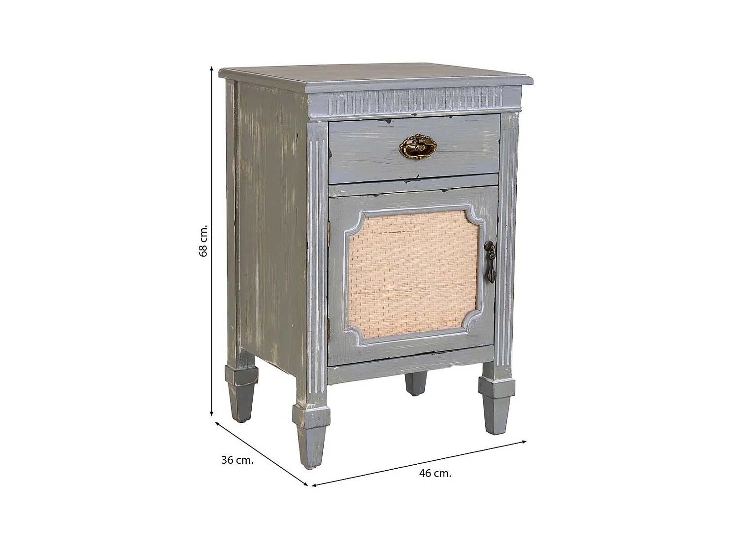 Mesita de madera lacada azul y rejilla 46x36x68h cm