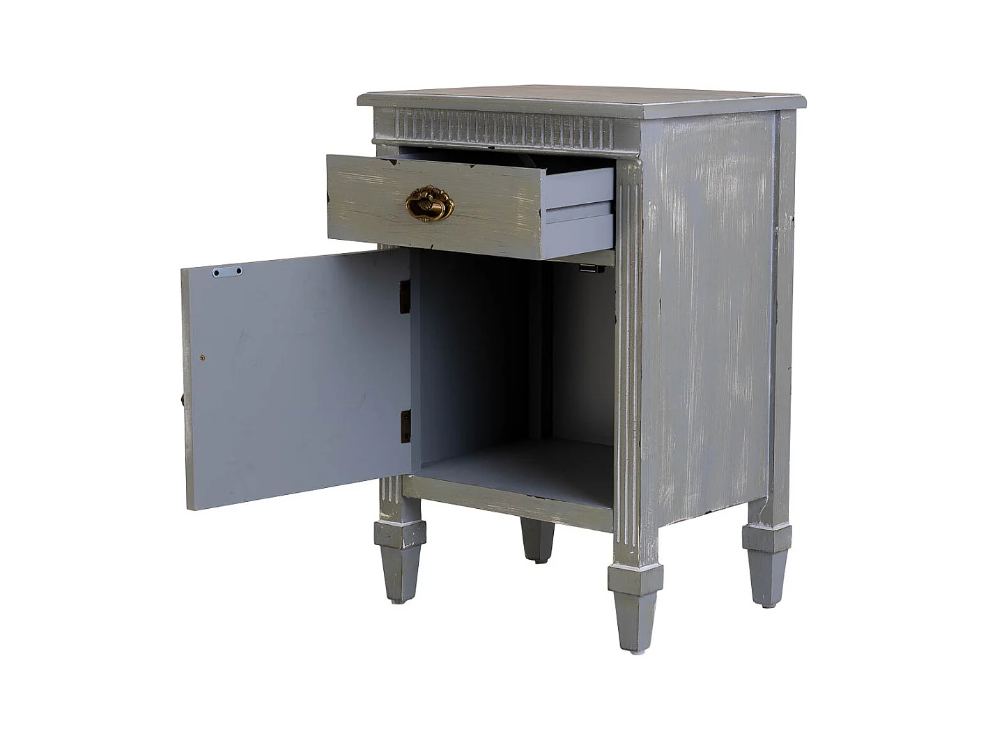 Mesita de noche de madera lacada en azul 46x32x52h cm