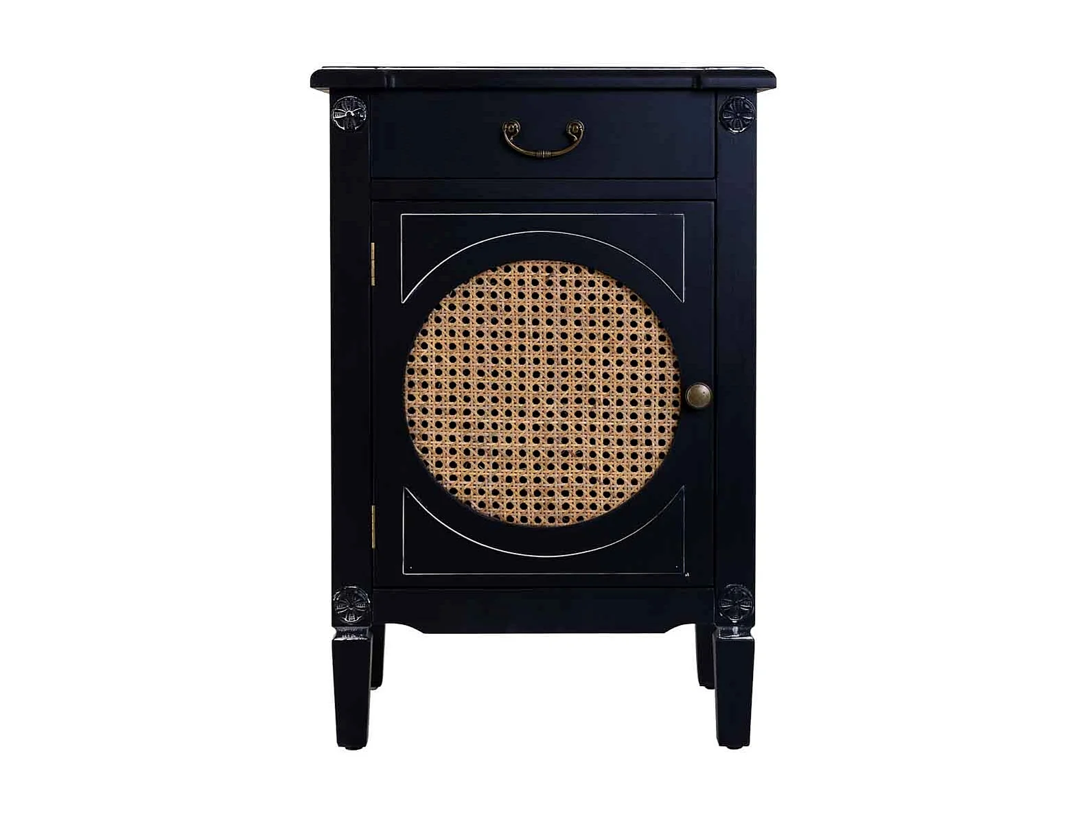 Mesita de madera lacada y rejilla de 1 cajón y 1 46x36x68h cm - Negro